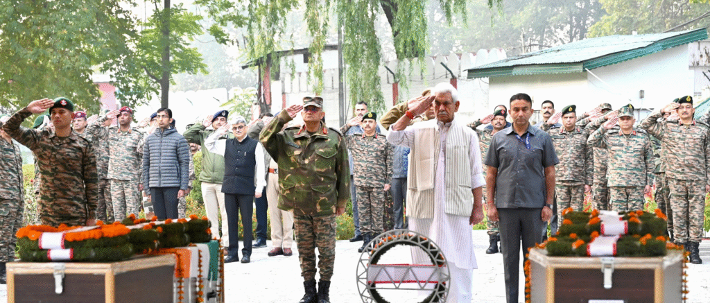 Lt Governor Manoj Sinha laid wreaths at a solemn ceremony in Srinagar by 1 PM